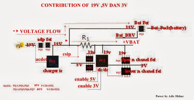 Before discussing the Power 5V and 3V_ALW should we understand the pathways 19V_ALW . Starting from Jack Power Adaptor sure incoming voltage by a voltage adapter . example is work at 19V~3.2a